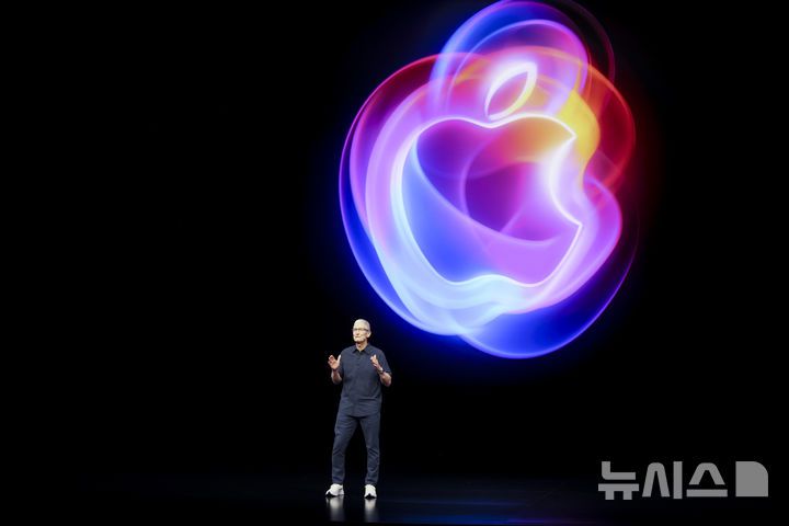 [쿠퍼티노=AP/뉴시스] 팀 쿡 애플 CEO가 9일(현지시각) 미 캘리포니아주 쿠퍼티노의 애플 본사에서 열린 신제품 발표회에서 아이폰 16 시리즈를 소개하고 있다. 아이폰16 시리즈는 6.1인치형 기본 모델과 6.7인치형 플러스, 고급 모델인 6.3인치형 프로와 6.9인치형 프로맥스로 구성됐다. 2024.09.10. |