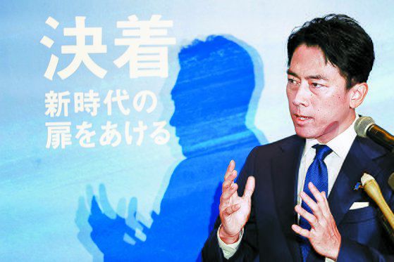 고이즈미 신지로 전 환경상이 지난 6일 자민당 총재 선거 출마 회견을 하고 있다. 로이터=연합뉴스 |