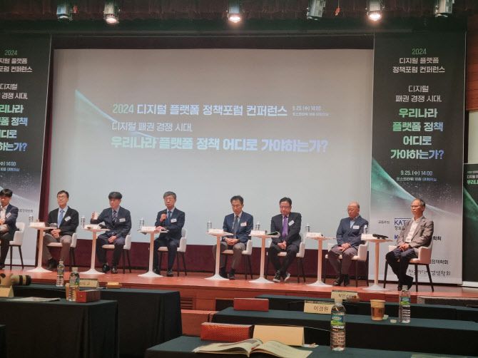 [이데일리 최정희 기자] 25일 서울 포스트타워에서 진행된 과학기술정보통신부 디지털플랫폼정책포럼 주최의 ‘디지털 패권 경쟁 시대, 우리나라 플랫폼 정책 어디로 가야 하는가?’라는 주제의 컨퍼런스에서 대부분의 학자들은 공정거래위원회의 국내 플랫폼 규제안에 비판적인 의견을 제시했다.