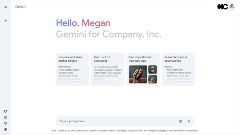 벤처비트는 24일(현지시간) 비즈니스, 엔터프라이즈 및 프론트라인 플랜의 구글 워크스페이스 사용자는 별도의 제미나이 애드온을 구매할 필요없이 플랫폼에 내장된 제미나이 앱에 자동으로 액세스할 수 있게 됐다고 보도했다.