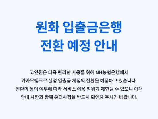 과거 코인원이 NH농협에서 카카오뱅크로 제휴은행을 변경했을 때에도 많은 어려움이 있었어요. 이용자들이 코인원을 이용하기 위해 카카오뱅크 계좌를 새로 연동해야 했거든요. 만약 카카오뱅크의 기존 사용자가 아니었다면 신규 계좌 입출금 한도 금액 등을 재설정해야하는 불편함이 있었죠. 코인원은 빗썸보다 시장 점유율이 상대적으로 낮아 변경이 비교적 용이했을 것으로 예상됩니다.