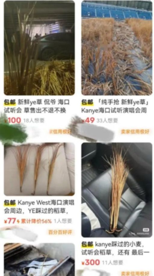 콘서트가 끝나자 중국 최대 중고 거래 플랫폼 '셴위'에는 칸예가 공연장에서 밟은 밀 싹이 거래됐다. 가격은 최대 5만6000원까지 책정됐다.