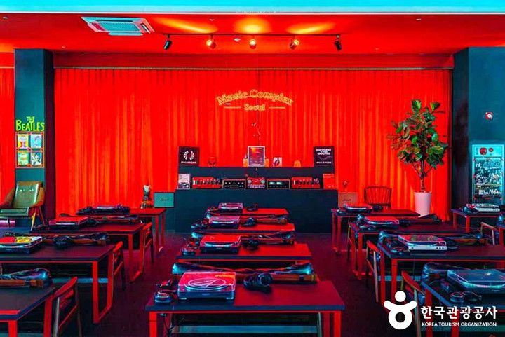 인기에 힘입어 부산에 분점을 낸 핫플레이스는 또 있다. 음악 감상실과 카페를 결합한 뮤직컴플렉스 서울 부산점이다. 이곳은 그야말로 LP 도서관을 방불케 한다. 가수는 물론, 장르와 시대까지 다양하게 아우르는 LP 2만 여장이 사방을 가득 메우고 있다. 특히 2층의 계단 공간을 가득 채우는 거대한 LP 아트월은 부산점에서만 만나볼 수 있는 포토존이다.