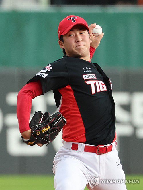 (부산=연합뉴스) 강선배 기자 = 28일 오후 부산 동래구 사직야구장에서 열린 2024 프로야구 KIA 타이거즈와 롯데 자이언츠의 경기. 1회 말 롯데 공격 KIA 선발투수 윤영철이 투구하고 있다. 2024.9.28