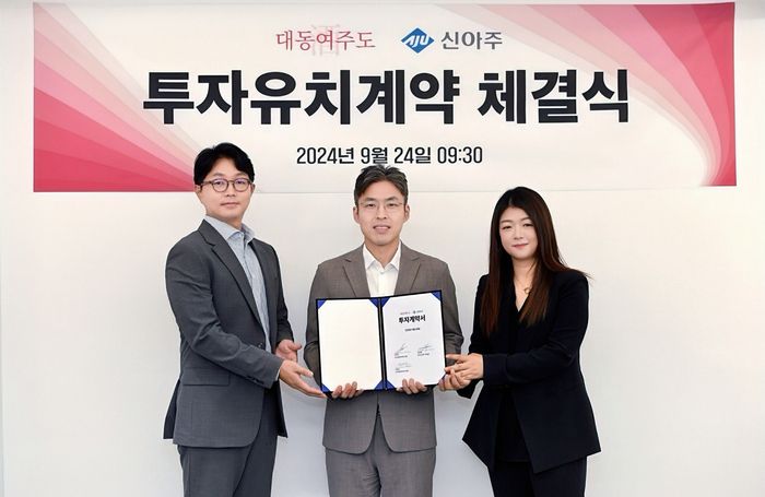 문경회 신아주그룹 부회장(가운데)와 이지민(오른쪽)•이세민(왼쪽) 대동여주도 공동대표가 기념촬영을 하고 있다. (대동여주도 제공) |