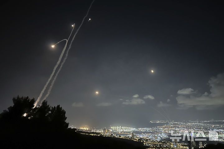 [하이파=AP/뉴시스] ??이스라엘군은 예멘에서 28일(현지시각) 오후 미사일이 발사돼 방공망으로 요격했다고 밝혔다. 사진은 지난 23일 이스라엘 북부 하이파에서 바라본 이스라엘 아이언돔 방공 시스템이 레바논에서 발사된 로켓을 요격하기 위해 발사되는 모습. 2024.09.29 |