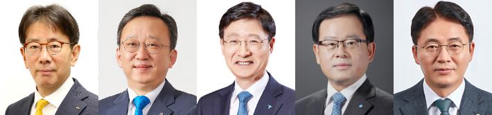 5대 은행장. (왼쪽부터) 이재근 KB국민은행장, 정상혁 신한은행장, 이승열 하나은행장, 조병규 우리은행장, 이석용 NH농협은행장. 연합뉴스 |
