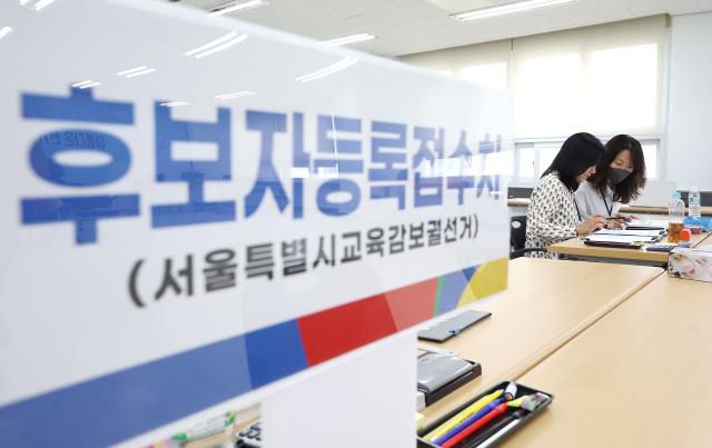 서울시교육감 보궐선거 후보 등록일인 26일 오전 서울 종로구 서울특별시선거관리위원회에 후보자등록접수처가 마련되어 있다. 2024.9.26 [사진=연합뉴스] |