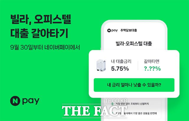 [더팩트|오승혁 기자] 네이버페이가 ‘주택담보대출 갈아타기’ 서비스 대상 주택을 기존 아파트에서 빌라, 주거용 오피스텔로 확대했다.