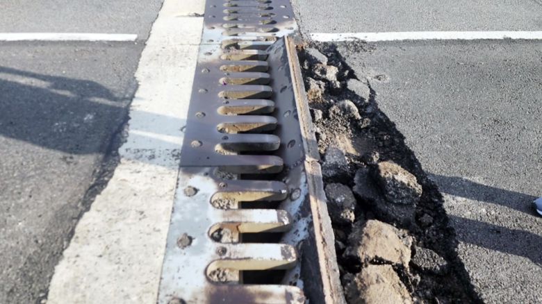 부서진 이음장치는 교량 상판을 연결하는 톱니 모양의 구조물로 기온 변화에 따라 늘어나거나 줄어드는 상판을 안전하게 연결하는 역할을 합니다.