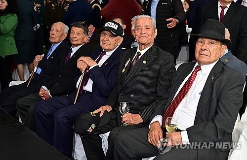 (보고타=연합뉴스) 1일(현지시간) 콜롬비아 보고타에 있는 주콜롬비아 대사관저에서 열린 개천절 국경일 리셉션 겸 국군의 날 행사에 6·25 참전용사가 자리하고 있다. 콜롬비아는 한국전에서 남미에서 유일하게 전투병을 파견한 나라다. 2024.10.2 [주콜롬비아 대사관 제공. 재판매 및 DB 금지]