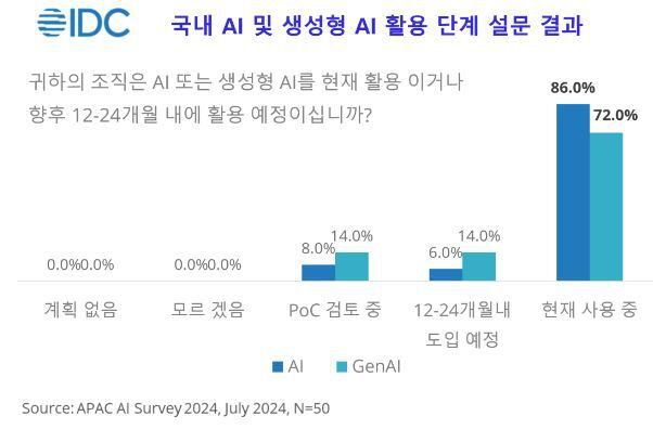 국내 생성형 AI 활용 단계 설문 결과. /한국IDC 제공