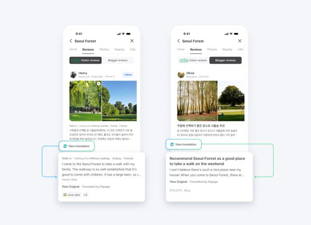 네이버는 외국인이 네이버 지도에서 장소를 탐색할 수 있도록 방문자 리뷰에 대해 영어, 중국어, 일본어 등 다국어 번역 서비스를 제공한다고 2일 밝혔다.