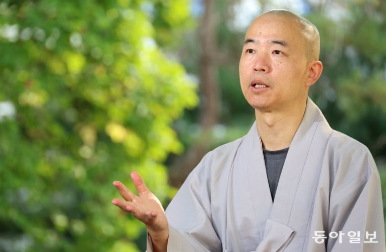 미국에서 활동하는 덕일 스님을 지난 30일 육군사관학교에서 만나 인터뷰하고 있다. 전영한 기자 scoopjyh@donga.com |