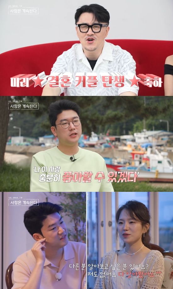 이어 영숙에게도 "선입견이 좀 있었다. 실제로 보니까 처음엔 제가 생각한 이미지랑 비슷했다. 사실 모태 솔로라는 사실에 조심스러웠다. 근데 걱정할 필요 없는 것 같다. 지금 모습이 더 제 취향"이라고 하자 데프콘은 "결혼 커플 탄생"이라며 두 사람을 응원했다.