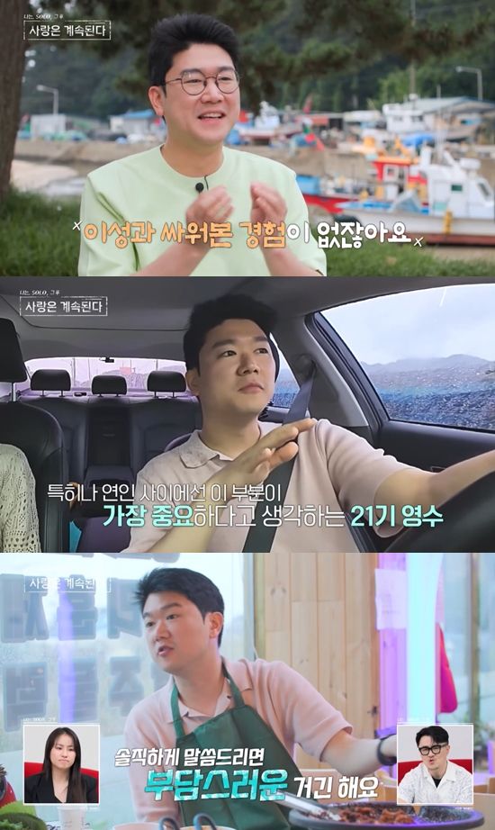 제작진 인터뷰에서 영수는 "(영숙이) 이성과 싸워본 경험이 없지 않냐. 그런 부분이 굉장히 중요하다고 생각하는데 경험이 없어서 이야기 할 수 없으니까 그런 부분이 좀 어렵더라"라며 솔직한 심경을 털어놨다.
