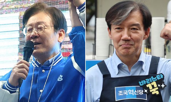 10·16 부산 금정구청장 보궐선거의 각 당 후보자 지원 유세에 참석한 더불어민주당 이재명 대표(왼쪽), 조국혁신당 조국 대표. 연합뉴스 |