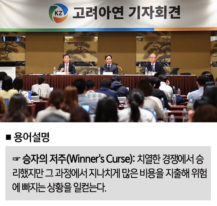 문제는 경영권 분쟁 후다. 높아질 대로 높아진 공개매수 가격은 영풍과 고려아연 중 누가 이기든 승자의 발목을 잡을 가능성이 높다. 영풍은 고려아연 주식매수에 2조5000억원이 넘는 돈을 투입할 예정이다. 고려아연의 자사주매입에 필요한 자금은 2조7000억원에 달한다.