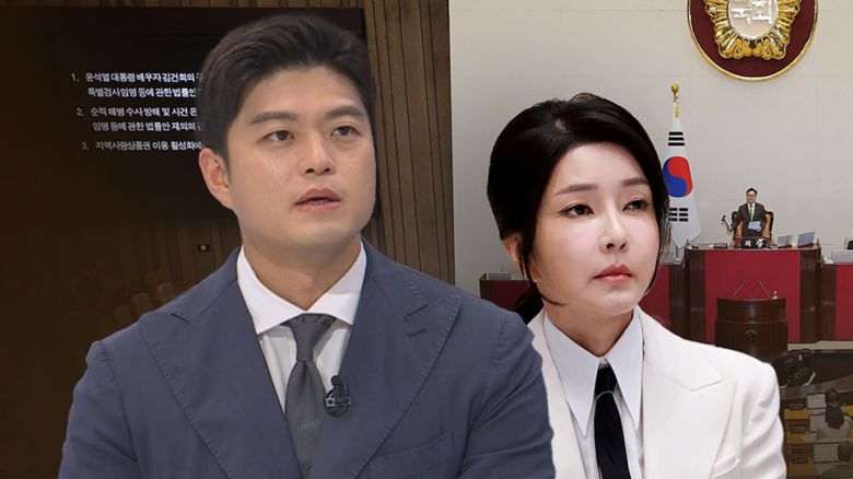 [김용태/국민의힘 의원 : 그렇습니다. 이 특검법과 또 여사가 입장을 표명하는 것은 분리해서 생각해야 된다라고 생각합니다. 김건희 여사와 관련해서 김건희 여사가 어떤 행동을 하든 그것이 옳고 그른 걸 떠나서 비호감도가 높은 상황이고 최근에 대선 당시에 여사께서 조용한 내조를 약속하셨는데 그렇지 못하게 된 점 그리고 명품백 의혹만 하더라도 저희가 법적으로는 불기소 처분을 받았지만 또 정치의 영역은 다른 것이거든요. 물론 이것이 이제 공작이라는 그런 것도 있지만 그걸 떠나서 과연 그렇게 하는 것이 적절했는가에 대한 국민적 의혹이 있는 것이고 영부인이라면 여기에 대해서 입장을 표명하는 것이 맞다라고 생각합니다. 왜냐하면 우리 사회에서 영부인이 갖고 있는 사회적 위치 지위라는 것이 있다고 생각합니다. 많은 국민들이 생각하시는 것들이 있을 텐데 그 명품백 의혹에서 과연 적절했는가에 대한 국민적 비판과 의혹이 있기 때문에 여기에 대해서는 솔직하게 여사께서 입장을 말씀드리고 하는 것이 국민적 도리라고 생각하고요. 또 여사가 앞으로 공개 행보를 하는 데 있어서도 더 수월해질 수 있다라고 생각합니다.]