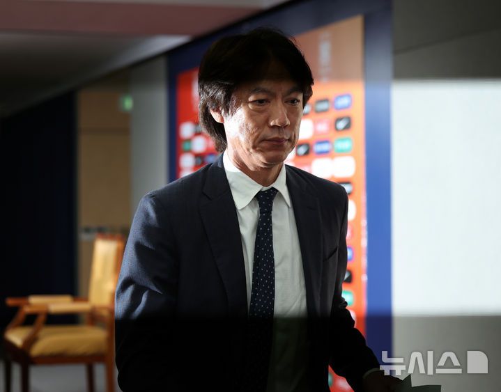 [서울=뉴시스] 김진아 기자 = 홍명보 대한민국 축구대표팀 감독이 지난단 30일 오전 서울 종로구 축구회관에서 2026 FIFA 북중미월드컵 아시아 지역 3차 예선 3, 4차전 출전 명단을 발표 기자회견을 마친 뒤 회견장을 나서고 있다. 2024.09.30.bluesoda@newsis.com |