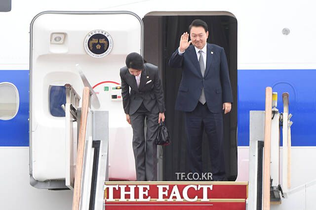 [더팩트ㅣ서울공항=장윤석 기자] 윤석열 대통령이 5박 6일간 필리핀과 싱가포르 국빈 방문, 라오스에서 열리는 '아세안 정상회의' 참석을 위해 출국했다.
