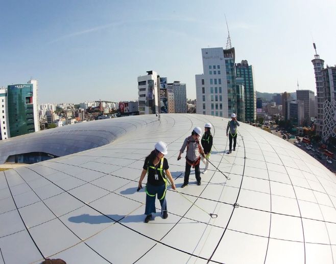 DDP 루프탑 투어는 실내외 공간에 국한됐던 'DDP 건축투어'의 동선을 지붕으로까지 확장했다. 알루미늄 패널과 사막 식물 '세덤'으로 이뤄진 DDP 지붕 위에서 주변을 전체적으로 조망·감상하는 이색적인 체험이 가능하다.