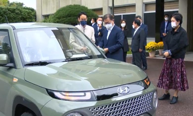 2021년 10월6일 청와대에서 캐스퍼를 전달받는 문재인 대통령 부부. 출처 대통령기록관 |
