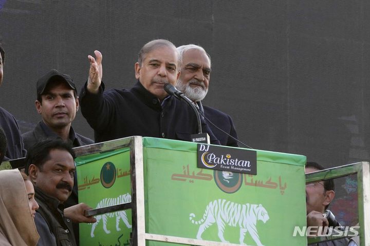 [쿠디안카스(파키스탄)=AP/뉴시스] ????파키스탄 남부 최대도시 카라치의 국제공항 근처에서 6일(현지시각) 중국인을 겨냥한 폭탄 테러로 인명피해가 발생한데 대해 파키스탄 셰바즈 샤리프 총리가 책임자 엄벌을 시사했다. 사진은 샤리프 총리가 지난 2월 6일 파키스탄 카수르 인근 쿠디안 카스에서 선거 유세 중인 모습. 2024.10.07 |