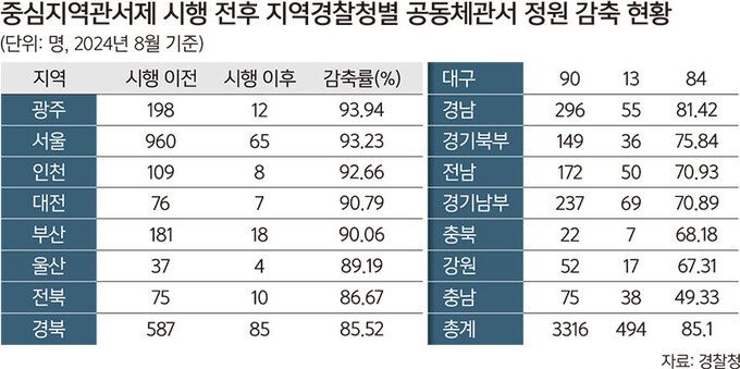 [단독] 경찰 ‘중심지역관서’ 운영 후 인력 85% ‘뚝’