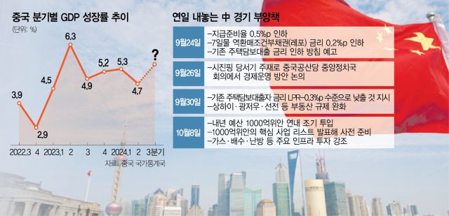 전문가들은 중국 정부가 소비 회복과 부동산 시장 활성화 등 시장 상황을 살피면서 추가 재정 투입 등 후속 대책을 이어갈 것으로 보고 있다. 특히 통화정책과 관련해 이달 중으로 사실상의 기준금리 역할을 하는 대출우대금리(LPR) 인하를 기정사실로 받아들이는 분위기다.