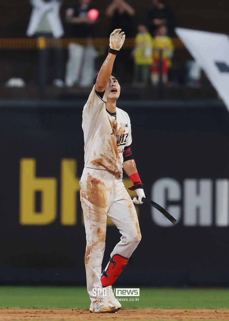 심우준은 호수비를 펼친 장면에 대해 "충분히 잡을 수 있을 것 같아서 몸을 날렸다. 2루로 승부를 강하게 했더니 아웃이 됐다. 마법이 아닌가 싶다. 세이프 타이밍인데 스파이크가 들리면서 아웃이 됐다"라고 당시를 떠올렸다.