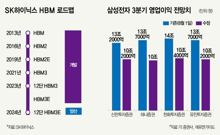 국내 증권사도 삼성전자 목표주가를 연일 낮추고 있다. 신한투자증권은 10월 2일 삼성전자 목표가를 기존 11만원에서 9만5000원으로 하향했다. 스마트폰 수요가 예상을 밑도는 가운데 레거시 메모리 수요가 둔화됨에 따라 3·4분기 예상 영업이익 추정치(10조2000억원)를 낮췄다. 상상인증권 역시 9월 30일 삼성전자 목표가를 기존 9만5000원에서 9만원으로 하향했다. 정민규 상상인증권 애널리스트는 “하반기 기대했던 핵심 고객사용 HBM 양산 공급 진입 가시성이 낮아지고, 폴더블 스마트폰 실적 부진이 이어질 예정”이라고 봤다,
