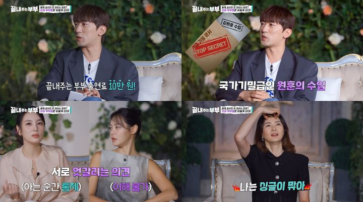 김원훈은 정미녀의 이야기에 공감하며 "맞다. 저도 그런 부분은 좀 숨기는 편이다. 아내가 '끝내주는 부부' 출연료를 10만 원으로 알고 있다. 국가 기밀처럼 숨기고 있다"며 농담처럼 이야기했다.
