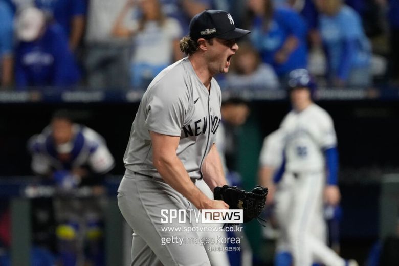 양키스는 11일(한국시간) 미 미주리주 캔자스시티 카우프먼 스타디움에서 열린 ‘2024 메이저리그 포스트시즌’ 캔자스시티와 아메리칸리그 디비전시리즈 4차전에서 선발 게릿 콜의 역투와 지안카를로 스탠튼의 해결사 본능, 그리고 이번 시리즈 들어 막강한 힘을 뽐내고 있는 불펜의 힘을 묶어 3-1로 이겼다. 캔자스시티의 거센 도전을 막아낸 양키스는 시리즈 전적 3승1패로 디비전시리즈를 통과했다. 양키스의 구단 역사상 19번째 챔피언십시리즈 진출인데, 당연히 메이저리그 최다 기록이다. 아메리칸리그 1번 시드인 양키스는 오는 15일 홈구장인 양키스타디움에서 아메리칸리그 챔피언십시리즈에 돌입한다. 상대는 클리블랜드와 디트로이트의 승자다. 두 팀은 2승2패로 맞선 채 13일 5차전을 앞두고 있다. 양키스의 챔피언십시리즈 상대도 이날 결정된다.