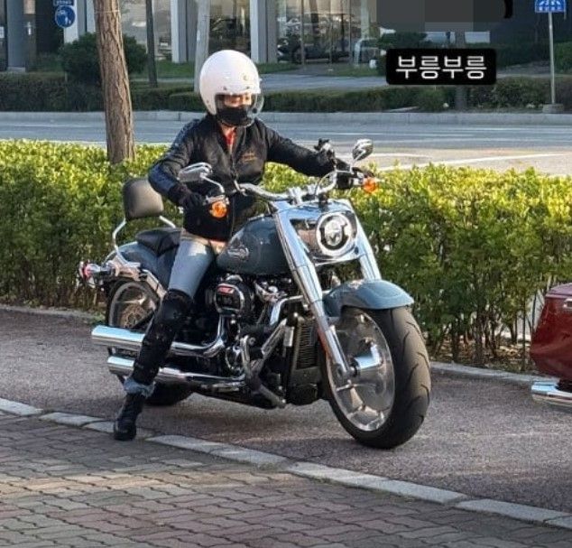 공개된 사진 속 이시영은 지인과 함께 자전거 도로 위에서 오토바이에 탑승해 있다.