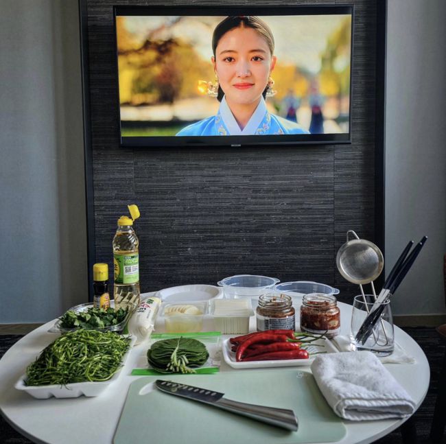 이와 함께 에드워드 리는 한국에서 머물던 호텔에서 찍은 것으로 추정되는 사진을 게재했다. 공개된 사진에는 에드워드 리가 TV로 MBC 사극 '옷소매 붉은 끝동'에서 배우 이세영이 열연한 장면을 지켜보며 원탁을 아일랜드 삼아 칼, 도마, 재료와 조리도구 등을 놓고 '흑백요리사: 요리 계급 전쟁'을 준비하는 듯한 모습이 담겼다.