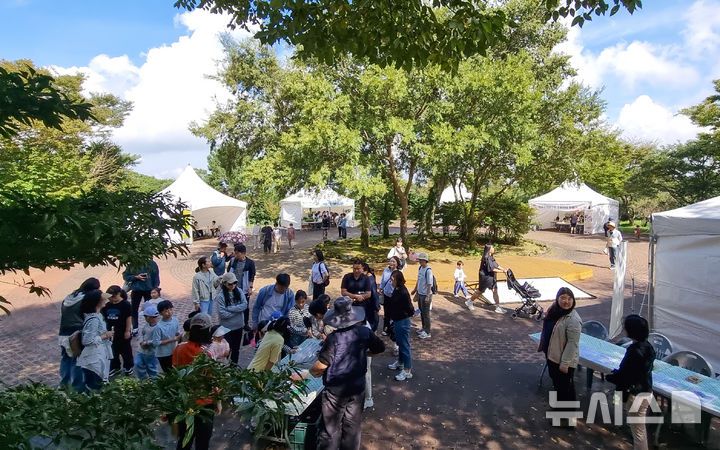 [제주=뉴시스] 우장호 기자 = 도시 숲의 중요성을 알리기 위한 제1회 나무포럼 이틀째인 12일 제주시 한라생태숲 원형광장 일원서는 식물치유 프로그램, 요가 프로그램과 명상, 제주의 주요 가로수 특징을 맞추는 보드게임, 제주 곤충 체험 등 볼거리, 즐거리 행사가 다채롭게 열렸다.