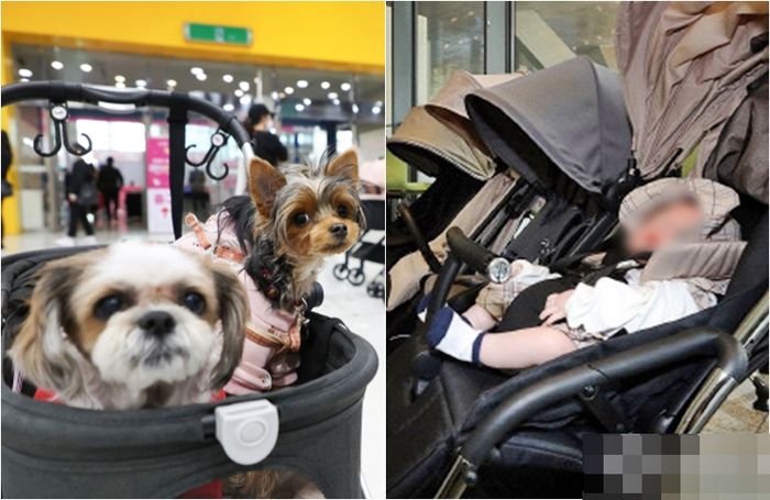 반려견을 유모차에 태우고 걷는 일이 늘면서 온라인 쇼핑몰에서는 신생아를 위한 유모차보다 개를 위한 이른 바 ‘개모차’ 판매량이 더 늘고 있다고도 소개했다.