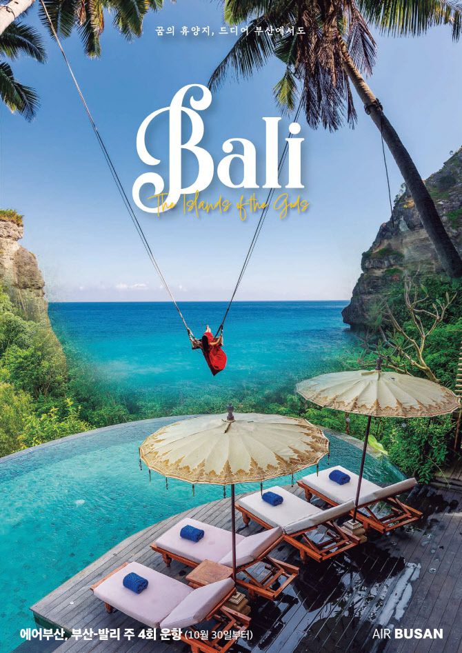한편, 에어부산 부산-발리 노선은 주 4회(월·수·금·일) 일정으로, 부산에서 오후 5시 50분에 출발해 발리에 현지 시간 오후 11시 45분에 도착, 귀국편은 현지에서 오전 1시 5분에 출발해 부산에 같은 날 오전 9시에 도착한다.