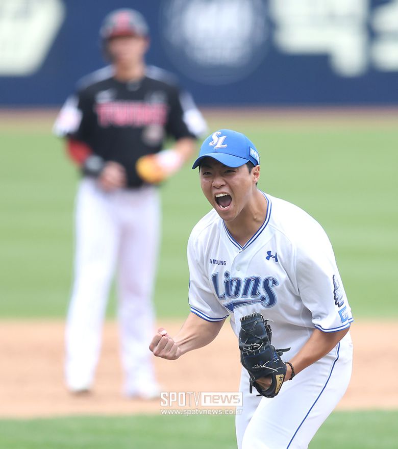 레예스가 내려간 뒤 잠시 삼성 마운드가 흔들렸다. 삼성 두 번째 투수 송은범이 문성주의 강습 타구를 처리하는 과정에서 손을 다쳐 교체됐다. 계속된 2사 만루에서 '좌승현' 이승현이 올라왔으나 홍창기의 땅볼을 1루수 디아즈가 놓치면서 주자 2명이 홈을 밟았다. 이승현은 신민재에게 1타점 적시타를 맞고 점수 7-4에서 내려갔다.