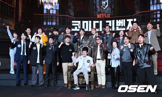 14일 오전 서울 중구 동대문 브이스페이스에는 넷플릭스(Netflix) 새 예능 ‘코미디 리벤지’ 제작발표회가 진행된 가운데 권해봄 PD, 박현석 PD, 이경규, 박나래, 이용진, 황제성, 김경욱, 이상준, 신기루, 곽범, 이창호, 이선민, 조훈, 신규진, 이재율, 엄지윤, 박세미, 김지유, 송하빈 등이 참석해 프로그램에 대한 이야기를 나눴다.