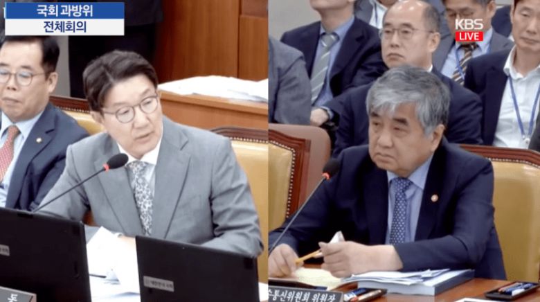 2023년 5월 24일 국회 과학방송통신위원회 전체회의에서 국민의힘 권성동 의원은 이날 회의에 참석한 한상혁 당시 방통위원장에게 “임기 두 달 남은 사람을 뭐하러 탄압하나. 정부에서는 명백한 근거행위가, 범죄 행위를 저질렀다는 증거가 있기 때문에 면직을 하려고 하는 것”이라고 말했다. 한 위원장은 같은 달 30일 면직됐다. (출처: KBS)