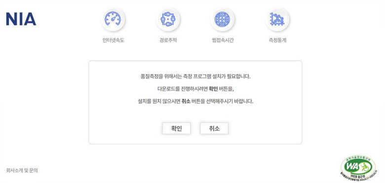 NIA 인터넷 속도 측정 프로그램 설치 / 출처=NIA 캡처 |