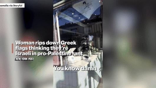 16일(현지시각) 뉴욕포스트는 "이스라엘에 반대하는 한 여성이 뉴저지의 레스토랑 밖에서 그리스 국기를 떼어내는 자신의 영상을 공유해 화제가 되고 있다"고 전했다.
