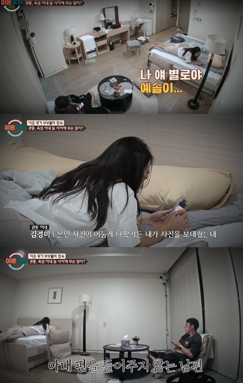 또한 이날 김경미는 같은 출연자 부부인 '욕설 아내'와 트러블도 생겼다. 김경미는 심리 치료가 끝나고 '욕설 아내'의 사진을 찍어줬으나 사진 결과물에 만족하지 못하는 '욕설 아내'에게 불만을 품은 것.