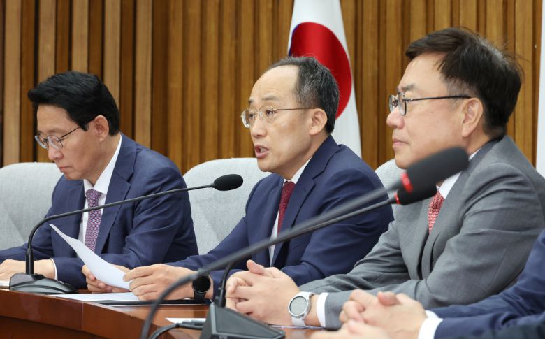 추 원내대표는 아울러 민주당이 심우정 검찰총장, 이창수 서울중앙지검장을 탄핵하겠다고 한 것을 두고 “검찰총장, 중앙지검장을 탄핵한다는 건 사실상 검찰을 올스톱하겠다는 것”이라며 “결국 이재명 대표와 민주당을 향한 검찰 수사·기소 대한 보복”이라고 했다.