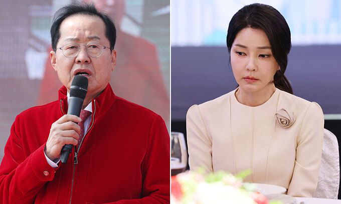 홍준표 대구시장(왼쪽), 김건희 여사. 연합뉴스·뉴시스