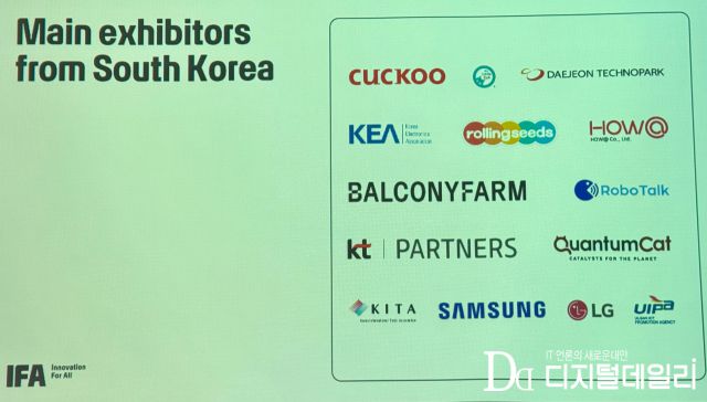 한국은 IFA의 혁신 스타트업 플랫폼인 IFA 넥스트의 공식 혁신 파트너 국가로 선정돼 한국관을 자체적으로 운영하며 20개의 엄선된 한국 스타트업과 중소기업을 소개하는 기회를 가졌다. 최신 기술과 테크 트렌드 비전을 살펴보는 장이었던 올해 IFA 넥스트에서 특히 인공지능(AI)과 지속가능성이 메인 테마를 이루었으며, 디지털 헬스와 콘텐츠 창작 등도 주요하게 다뤄졌다.
