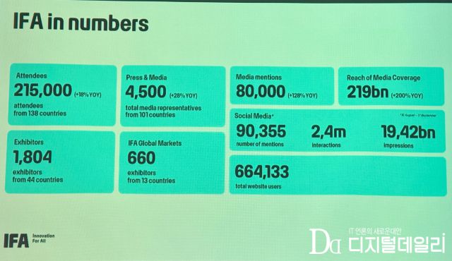 이번 성공적 개최와 관련해 그는 한국의 혁신이 큰 도움이 됐다고 강조했다. 그는 “올해 IFA 넥스트(NEXT)의 혁신 파트너 국가로 한국을 맞이할 수 있었던 것은 '모두를 위한 혁신(Innovation For All)'이라는 IFA 100주년 행사의 주제에 매우 부합하는 일이었다”라고 자평햇다.