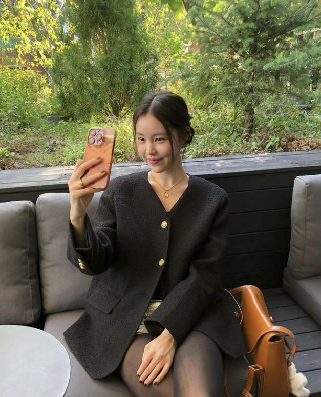 사진 속 김예원은 블랙 버튼업 자켓을 착용해 깔끔하면서도 격식 있는 느낌을 줬다. 또 짧은 화이트 쇼츠와 블랙 스타킹을 매치해 모던함과 캐주얼함을 동시에 표현했다.